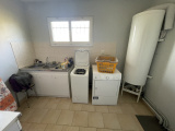 Buanderie avec évier et cellier.