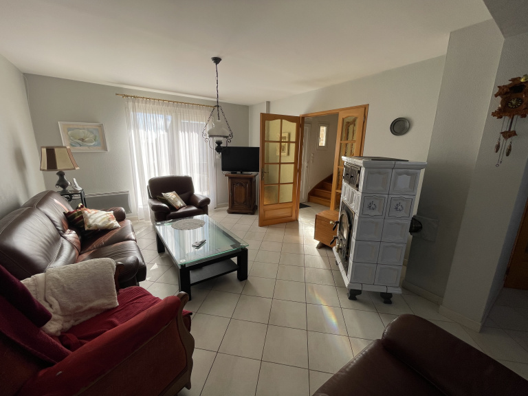 Il comprend au rez-de-chaussée, entrée, cuisine équipée, salon avec poêle à bois alsacien, séjour, 2 chambres dont une avec placards, salle de douche et WC séparé.